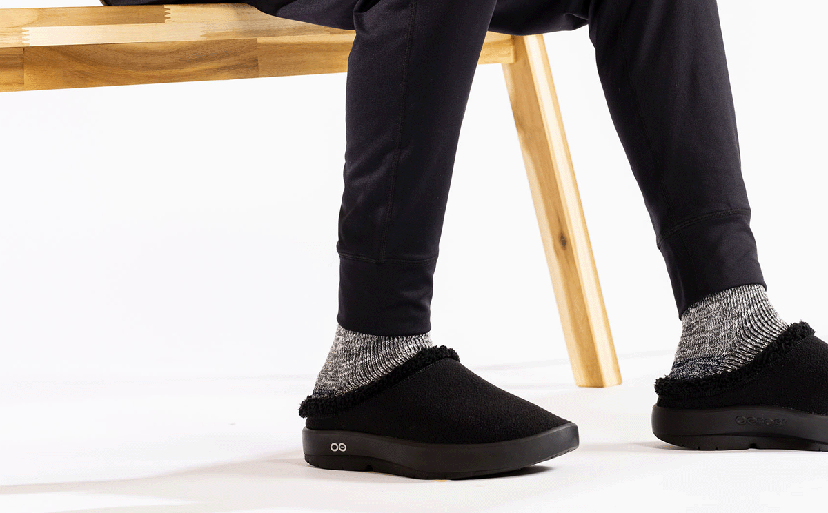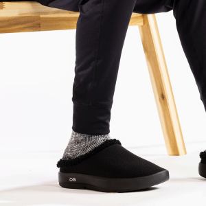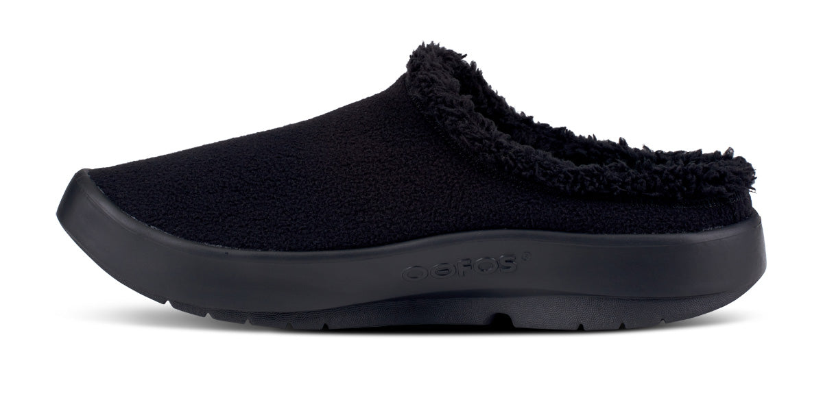 FINAL SALEnThe OOcoozie Mule is the perfect around the house or post-gym option to slide into for stability and relief. Our unique one-of-a-kind OOfoam™ technology that absorbs impact is matched with a warm vegan sherpa material that is both recyclable and machine washable. Add in the unique footbed design that cradles and supports arches and you’ll recover faster. A versatile hygge style boasting active recovery – get cOOzy.