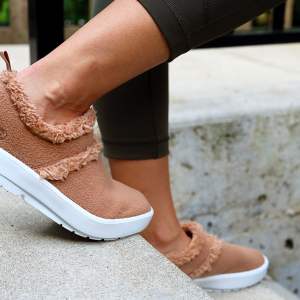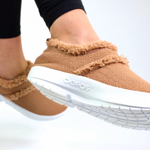 FINAL SALEnPlease note: recommends buying half a size up in this style.nThe OOcoozie provides the perfect blend of cushion and stability for both indoor lounging and quick errands out. The upper is constructed with a warm vegan sherpa material that is both recyclable and machine washable. Like all products, it has our unique one-of-a-kind OOfoam™ technology that absorbs impact, so your body doesn’t have to. Add in the unique footbed design that cradles and supports arches and you’ll recover faster. Active recovery with the soft, cozy warmth you desire in a versatile hygge style.