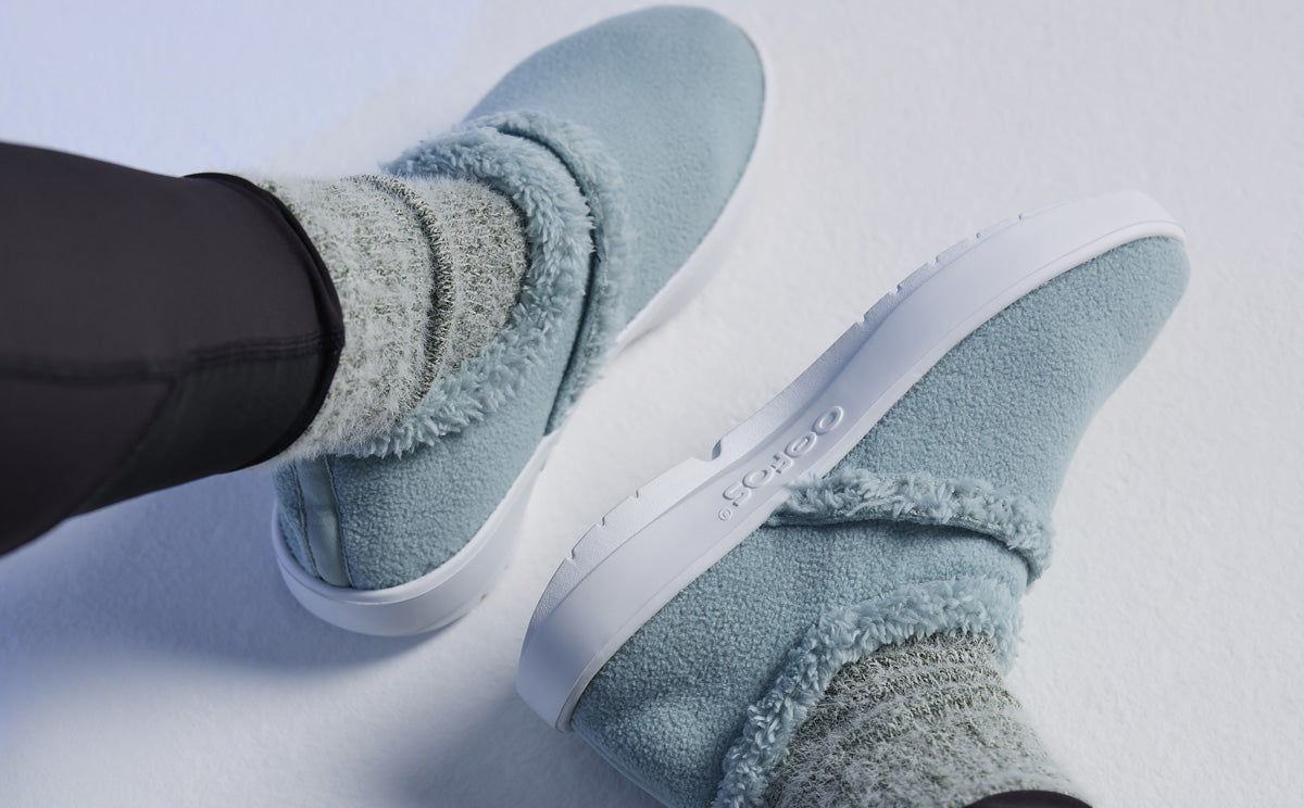 FINAL SALEnThe OOcoozie provides the perfect blend of cushion and stability for both indoor lounging and quick errands out. The upper is constructed with a warm vegan sherpa material that is both recyclable and machine washable. Like all products, it has our unique one-of-a-kind OOfoam™ technology that absorbs impact, so your body doesn’t have to. Add in the unique footbed design that cradles and supports arches and you’ll recover faster. Active recovery with the soft, cozy warmth you desire in a versatile hygge style.n