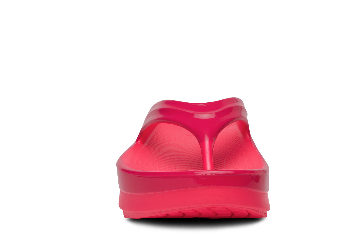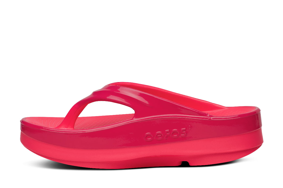 The OOmega OOlala is a versatile, modern take on the traditional OOlala active recovery sandal. Still featuring the same proprietary OOfoam™ technology and unique footbed design – the addition of the MEGA midsole gives you an extra 15mm of impact-absorbing OOfoam™ technology. The OOmega is a step forward in fashion and another step into active recovery. OOmega, a women’s platform sandal for trend-setting recovery, day or night. Unique in footwear and only from.nStack: Neon Berry with a Punch of color.